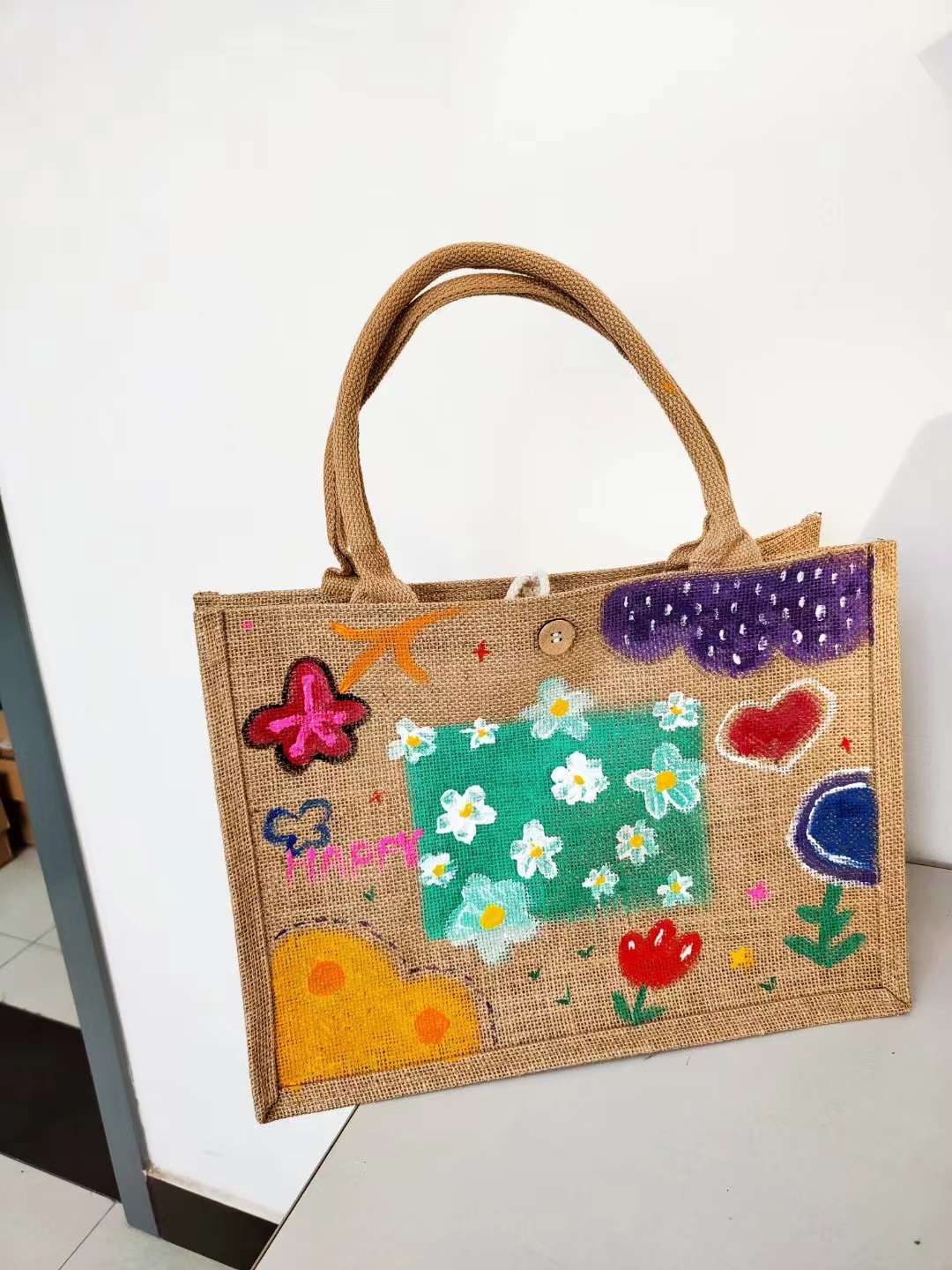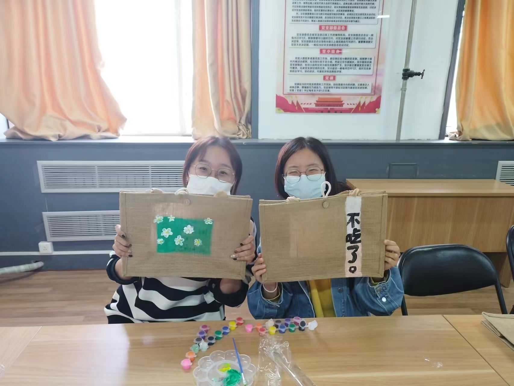 料包上恣意擦鸦,自在创造,把本身的创意战设法1笔笔转移为事实,全部举动现场布满着浓郁的创造关切战高兴气氛。通过年夜家的谨慎画造,单纯童趣的卡通绘、秋意浓厚的风景绘等1幅幅撰着涌现正在长远,平凡的麻料包摇身形成了邃密的工艺品,年夜家皆不由得开影纪念。