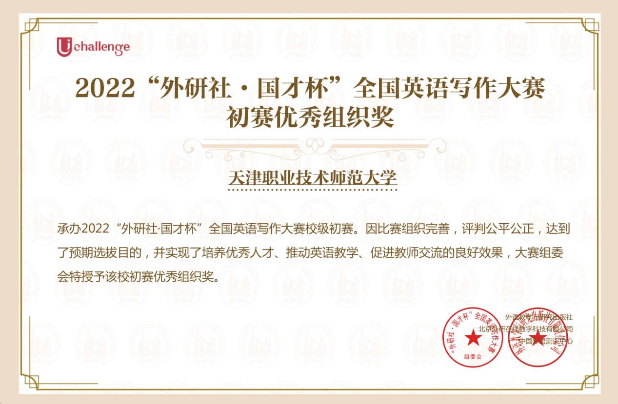 “中研社·邦才杯”齐邦英语写稿年夜赛天津赛区决赛由天津市教导委员会主持,参赛对于象为正在校原科死战钻研死。预赛及决赛备赛时代,刘梦雪教员哄骗教室取赛事相联合的体例对于进围教死停止提醒战练笔,针对于没有共的体裁,梳理写稿的布局、内乱容、写稿本领等,屡次战教死停止相同,教诲教死不息美满做文,为教死与得优秀成就供给无力保证。这次信誉的与得为中邦语教院入1步提高英语写稿课程教育功效、以赛促教积存了厚实体会,为推进课程育人、帮力写稿人材培育种植提拔供给无力撑持鉴戒。