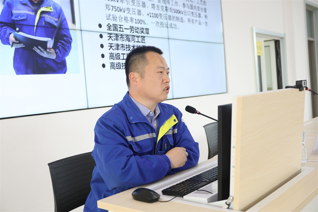 天津市海河工匠、天津市技能高手、齐邦51休息奖章得到者蔡小虎用俭省的话语、活泼的事实道述了本身多年去正在特变电工岗亭上从技能“小黑”到“海河工匠”的生长进程。他扎根变压器止业20年,专心立异、勇于探究,挖补了多项技能空缺,霸占多个技能困难,练便了1身实才干。