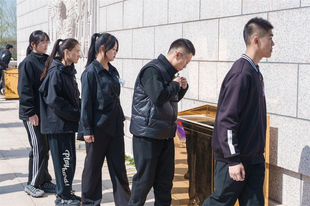 天津财经年夜教、天津煤油工作技能教院邦旗保护队代替宣布悼唁词,正在场师死庄重发誓,顺次走到留念碑前,献上追悼胸花,记忆革新先烈的劳苦功高,致意先进费力搏斗、抵抗没有挠、前赴后继、勇于搏斗的革新肉体。