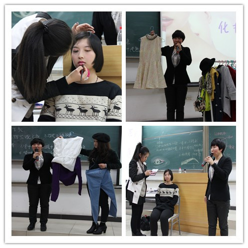 教员细致批注了粉饰的根本实践学问战平素调养,并耐烦的背年夜家道述了化装的基础步调、各个部位的妆饰办法及妆饰品的选取规范,对于同砚们平时的装饰困难战广泛存眷的芳华痘题目干了详细的回答。正在装束配搭圆里,春予教员聊到没有共场面装束的采用、3色配搭(便衣裳最多由3种脸色构成)战色彩的全体一致。末了,教员化表面为理论,现场为同砚扮装战衣饰配搭。经由过程对于照让正在场的同砚越发意会修饰的奇妙取魅丽。