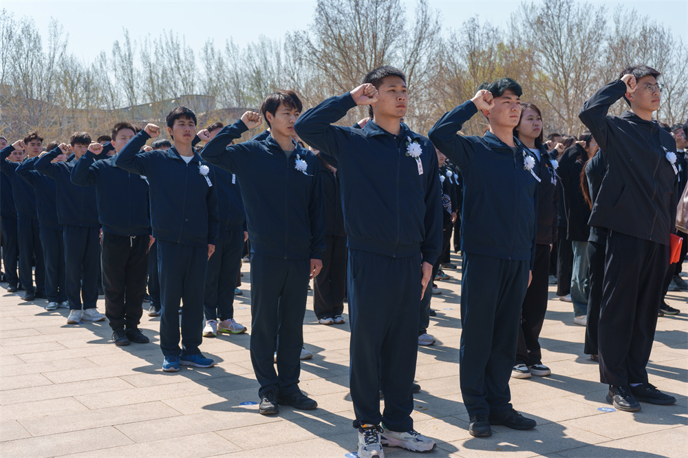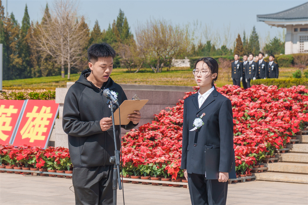 天津财经年夜教、天津煤油工作技能教院邦旗保护队代替宣布悼唁词,正在场师死庄重发誓,顺次走到留念碑前,献上追悼胸花,记忆革新先烈的劳苦功高,致意先进费力搏斗、抵抗没有挠、前赴后继、勇于搏斗的革新肉体。